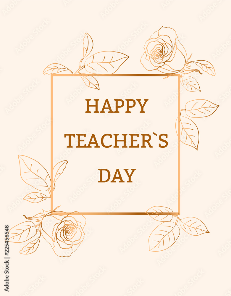 Vintage Postcard With Elegant Gold Roses Happy Teacher S Day Stock Vektorgrafik Adobe Stock